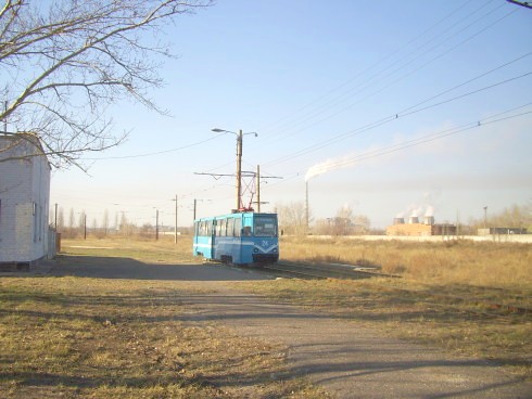 Павлодарский трамвай. Вагон на конечной станции «РМЦ».