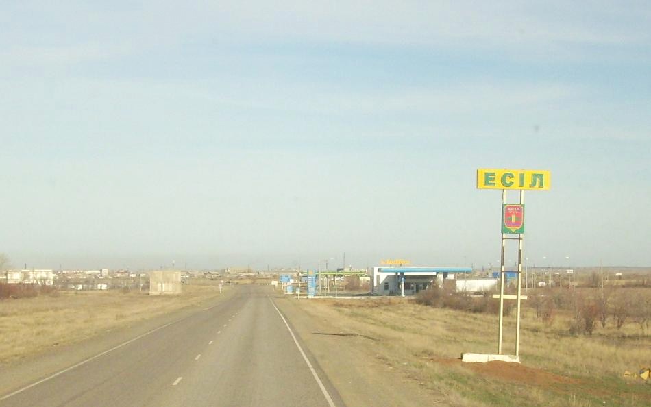 Автодорога Астана — Екатеринбург. Впереди — город Есиль. Вид на запад.