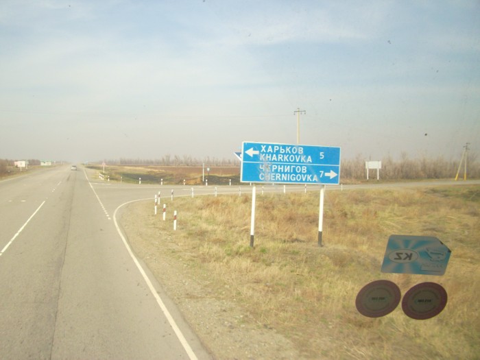 Выхожу из машины у въезда в Кустанай. Перед Кустанаем водитель пытался найти по рации какого-нибудь другого «дальнобойщика», который согласился бы довезти меня от Кустаная до границы (это почти 200 километров). Но все водители, с которыми удалось наладить связь, ехали в сторону Актюбинска.