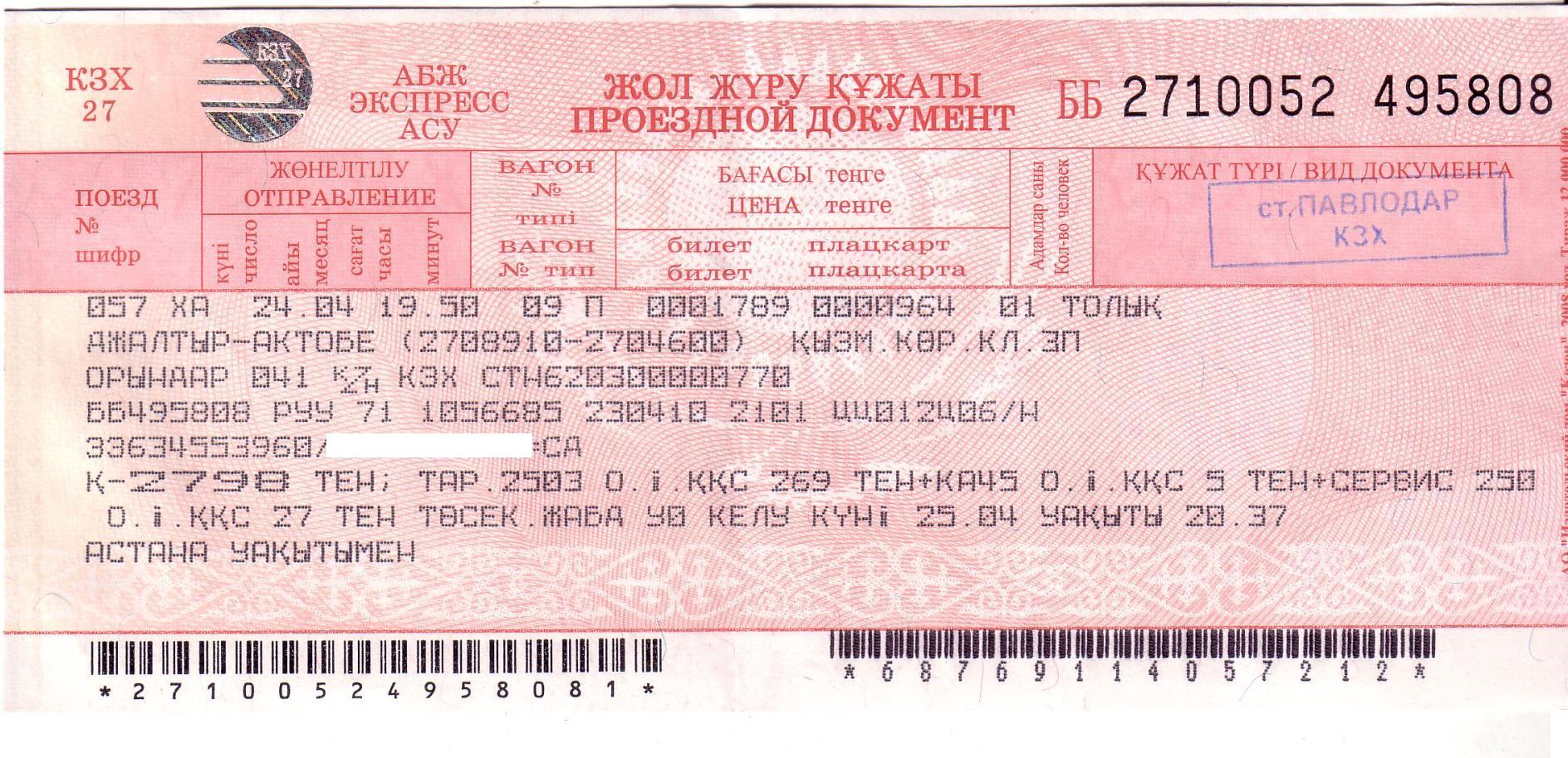 Билет Джалтыр — Актюбинск.