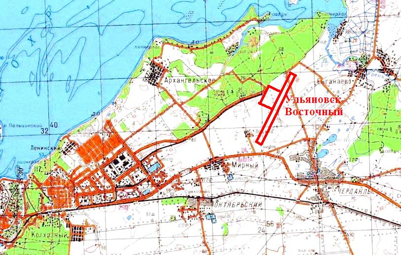 Аэропорт Ульяновск-Восточный на карте масштаба 1:200 000, изданной в 1993 году.