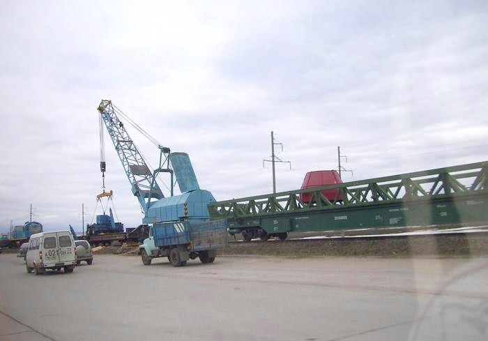 подъёмный кран из состава восстановительного поезда.