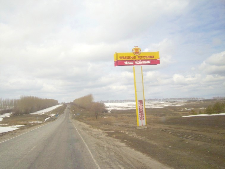 Выхожу в самом начале города Новочебоксарска, пересекаю «тающее» поле и вскоре оказываюсь на автодороге Чебоксары — Йошкар-Ола. Довольно быстро остановилась попутная легковая машина до Йошкар-Олы. За рулём — житель Чебоксар, направляющийся по служебным делам в соседний региональный центр.