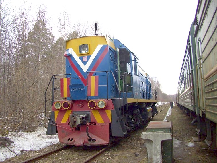 Тепловоз ТЭМ2-7603 на станции Лесная.