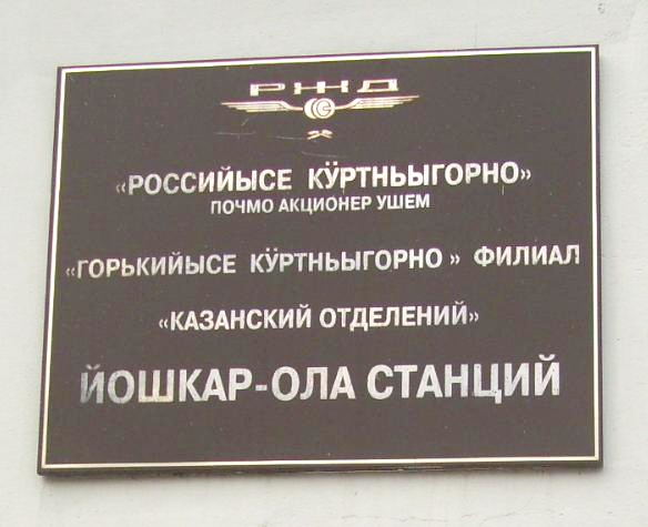 Редкий образец марийского языка — табличка на здании станции Йошкар-Ола.