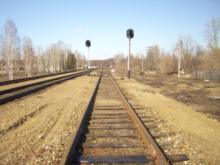 Станция Суслонгер, вид в северном направлении. За светофором — начало Юшутской железной дороги.