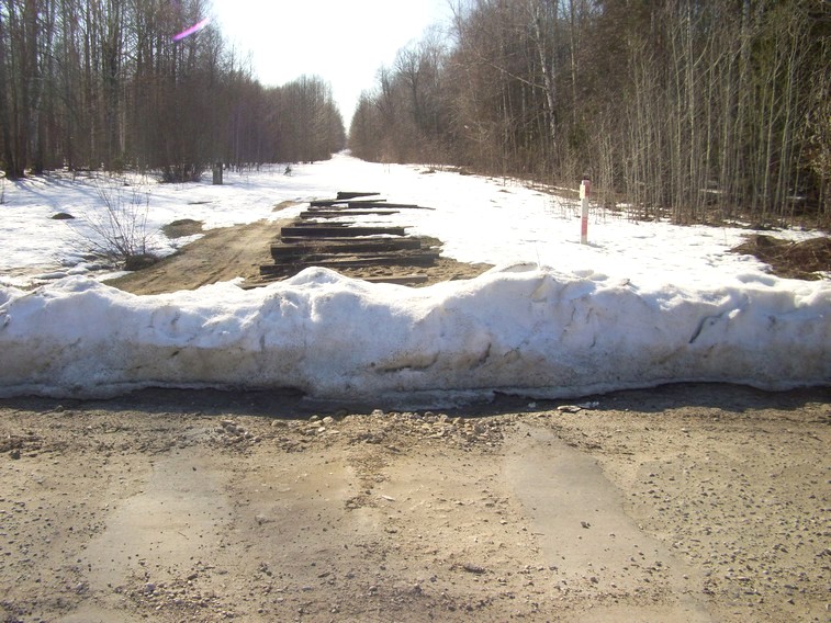 Предполагалось пройти всю железную дорогу пешком. Но оказалось, что это не представляется возможным. На календаре конец апреля. Однако большая часть разобранной железной дороги завалена слоем снега глубиной в метр. Идти по нему почти невозможно. 50-километровый путь занял бы не один день, а неделю или больше.