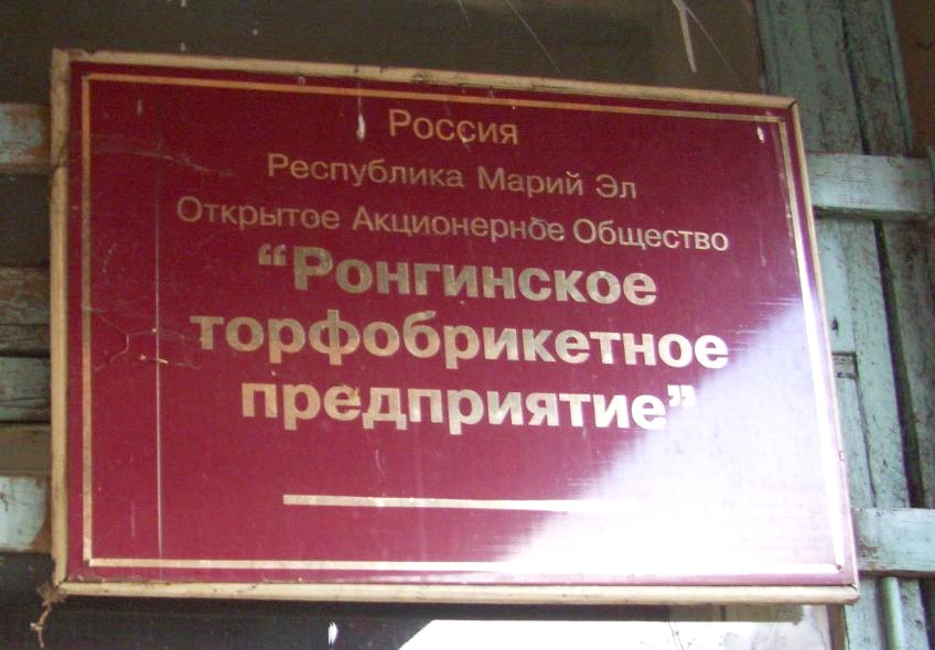 Табличка на здании конторы Ронгинского торфопредприятия.