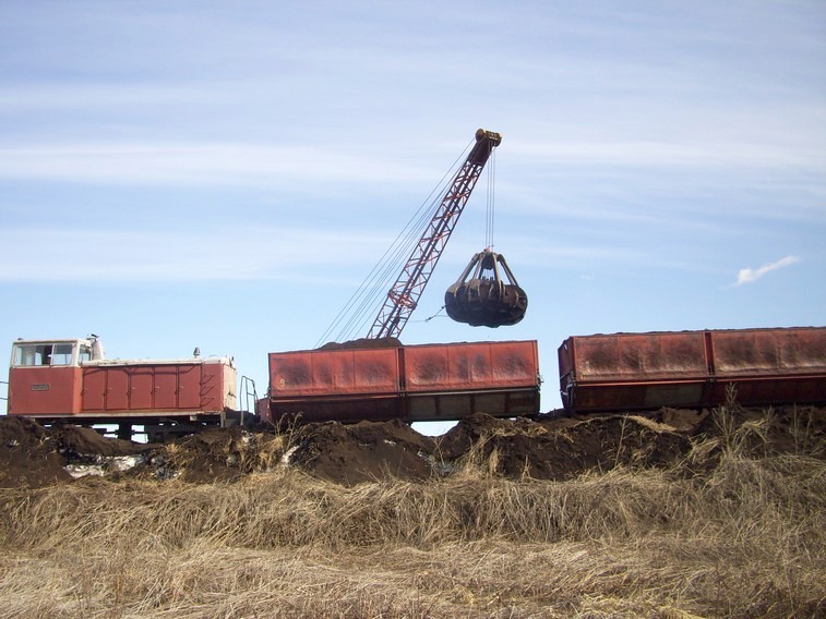 Тепловоз ТУ6А-3745. Загрузка вагонов торфом.