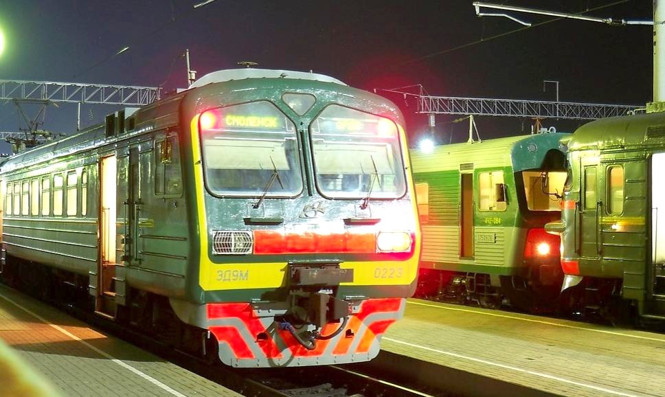 Станция Смоленск. Электропоезд ЭД9М-223 готовится к отправлению на Оршу, на соседнем пути