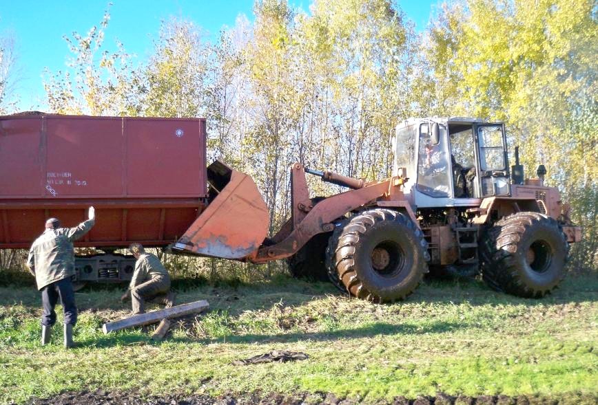 Поездка в кабине погрузчика «Амкодор» вблизи 1-го участка торфобрикетного завода «Сойне».