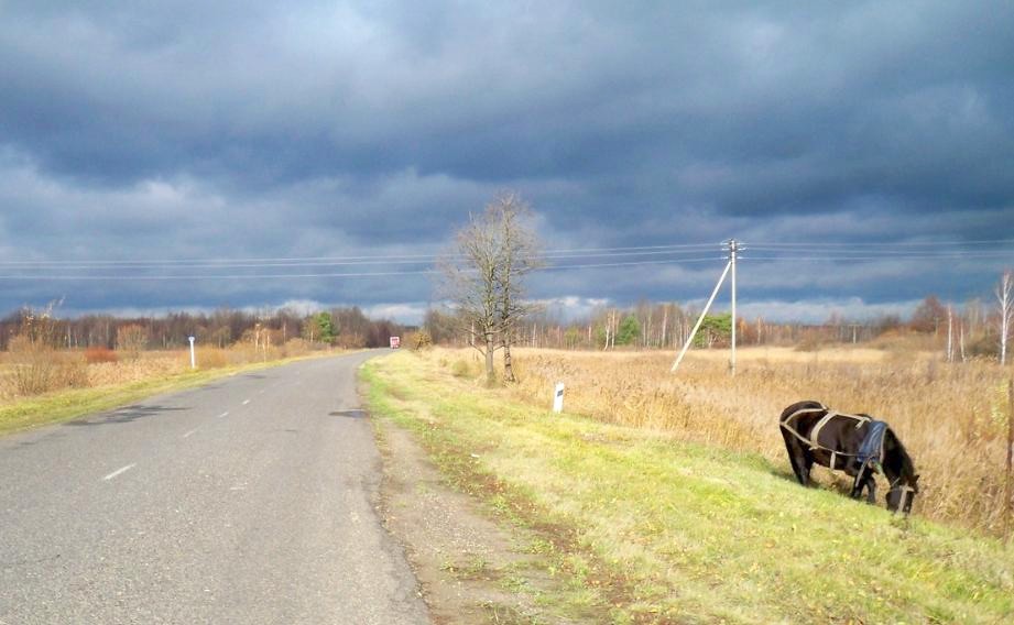 Направляюсь в сторону Городной бегом по обочине. Но вскоре остановился грузовой автомобиль. Выхожу вблизи указателя на «участок Зубково» (написано по-белорусски, «ЗУБКАВА»). Бегу «в спринтерском темпе» по грунтовой дороге. Важна каждая секунда, пока остаётся шанс успеть на поезд и не оставаться здесь до завтра! Навстречу проходили большегрузные автомобили, гружёные торфяной продукцией. Как оказалось, торф отсюда направляется в различные страны Европы.