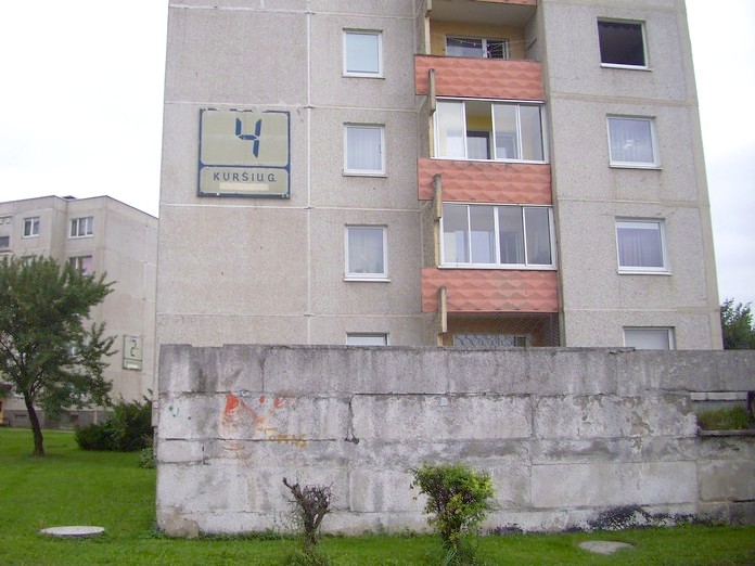 «Советские» многоэтажные дома в Каунасе. Табличка с номером дома, сохранившаяся со времён СССР.