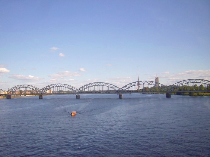 Рижский железнодорожный мост. Вид с Каменного (Октябрьского) моста. Все рижские мосты,