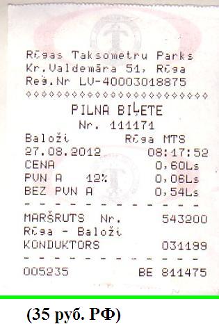 Билет на «маршрутку» Баложи — Рига.