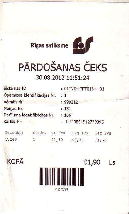 Билет для проезда в городском транспорте Риги.