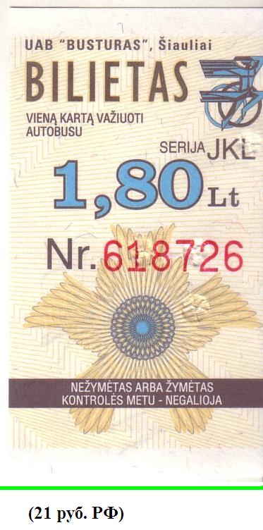 Шяуляй, билет на городской автобус.