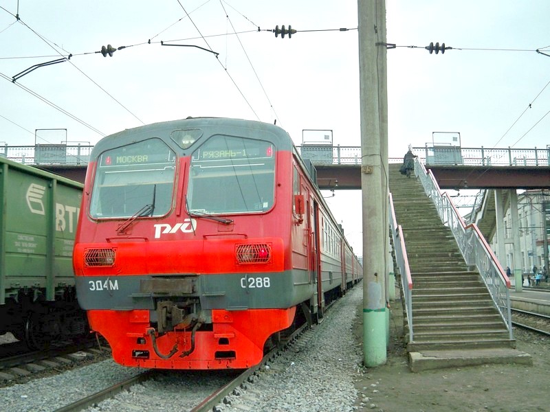 Три с половиной часа в электропоезде ЭД4М-0288 Москва - Рязань. Расцветка вагонов — не зелёная, а красно-серая.