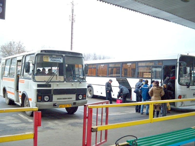Воронежский автовокзал. «ПАЗик» на Рамонь. На нём я добрался до начала дороги на аэропорт.