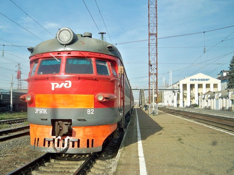 Станция Армавир-Ростовский. Электропоезд ЭР9ПК-0082, следующий до Белореченской.