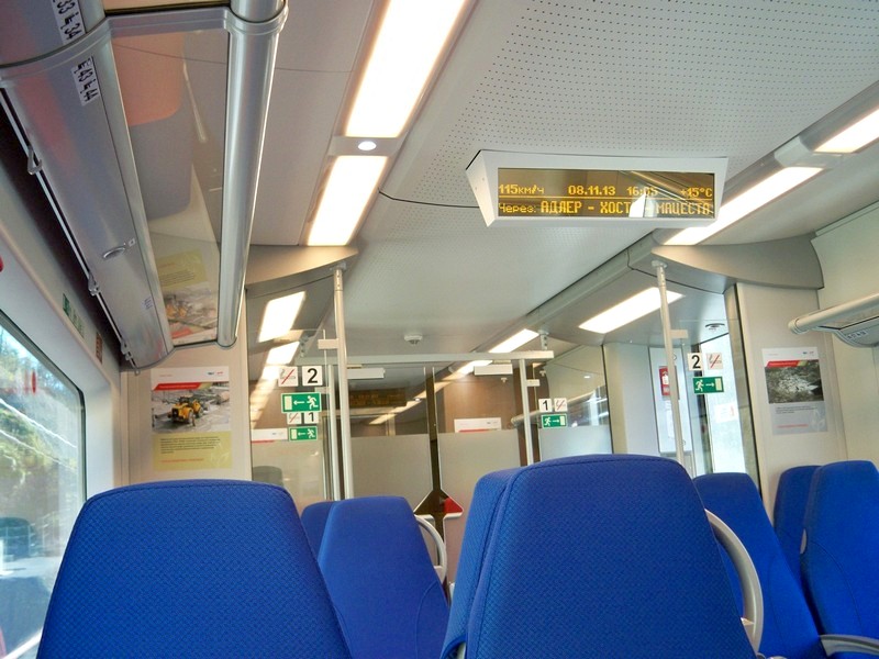От станции Адлер — до станции Сочи. Последний раз в этой поездке еду в электропоезде ЭС1. Я считаю: по своему исполнению ЭС1 — это тот минимум, который может существовать в России. Ни один состав производства Демиховского машиностроительного завода пока до него не дотягивает.