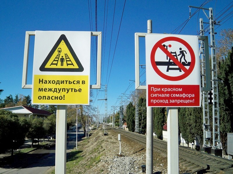 Окрестности станции Лазаревская. Чьё-то воображение нашло здесь пешеходный семафор.