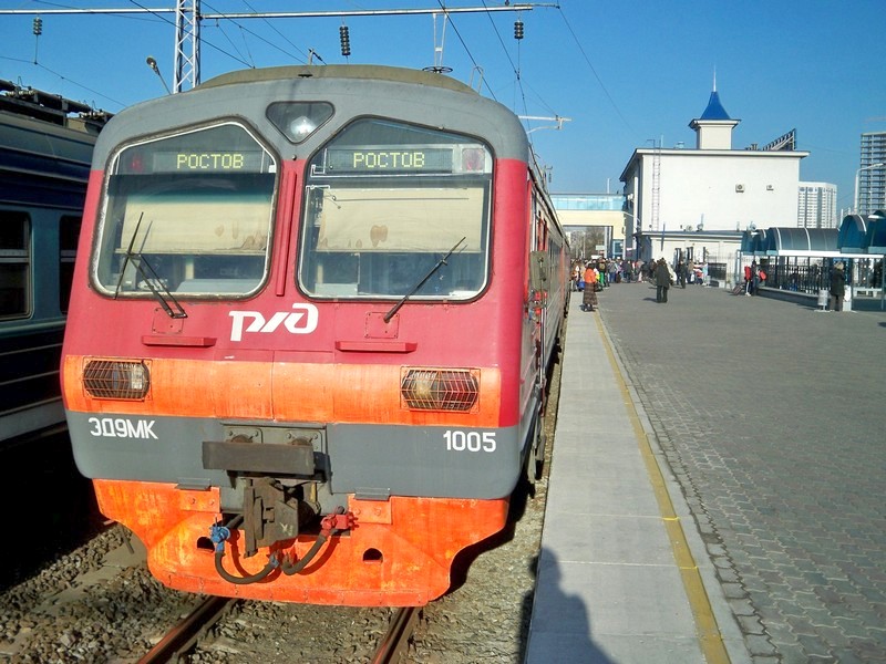 Электропоезд ЭД9МК-1005 из Краснодара прибыл к пригородному вокзалу станции Ростов-Главный.