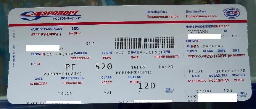 Посадочный талон Ростов — Воронеж.