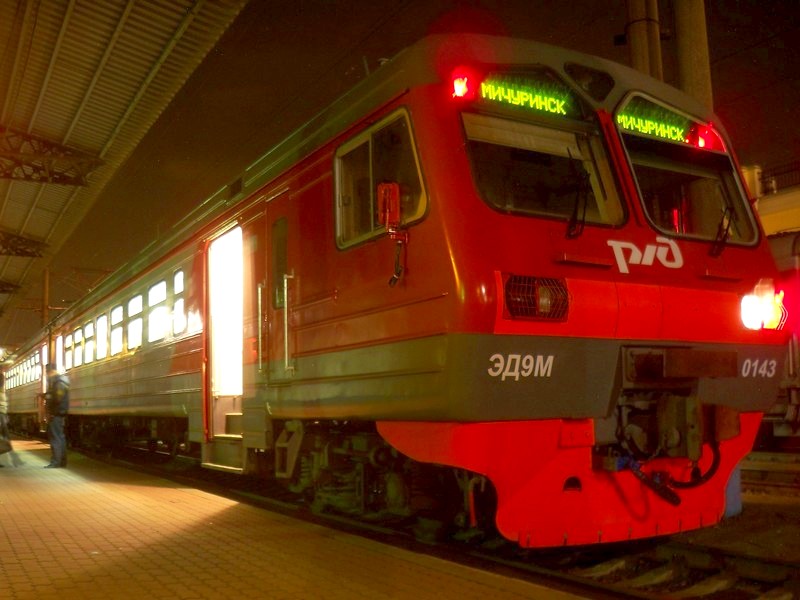 Электропоезд ЭД9М-0143 маршрута Воронеж — Мичуринск (от Грязей до Мичуринска — резервом).