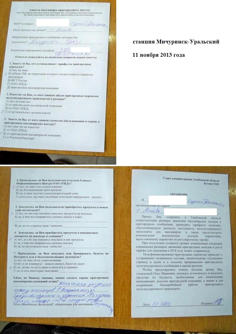 Анкета, которую я заполнил на станции Мичуринск-Уральский.