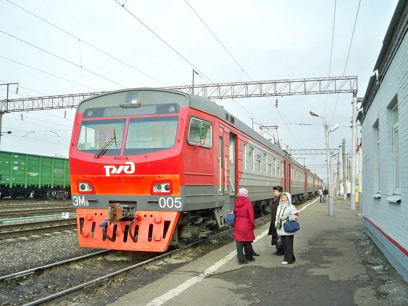Электропоезд ЭМ9-005 на станции Ряжск. Электропоезд проследует до станции Рязань II.