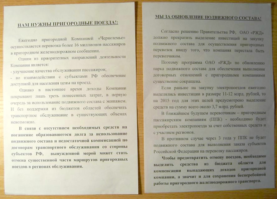 В Мичуринске проходила акция по сбору подписей в защиту пригородного движения. Я принял в этом участие.