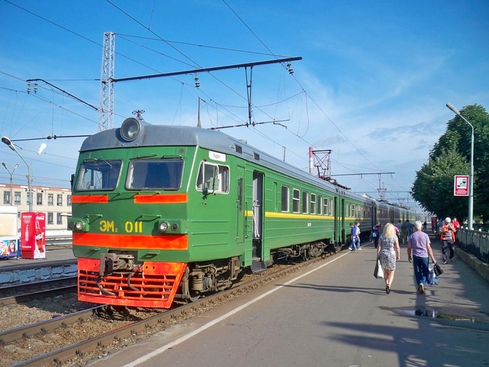 Станция Орёл. Производится посадка в электропоезд ЭМ2-011 сообщением Орёл — Курск.