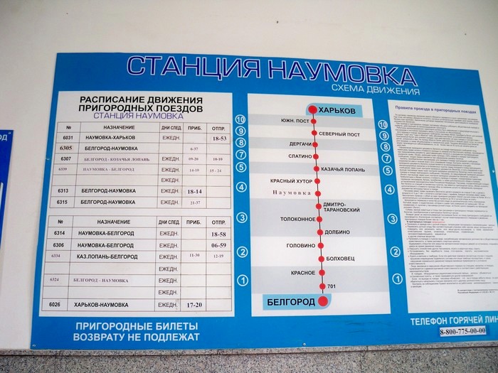 Станция Наумовка. Расписание, вывешенное на вокзале.