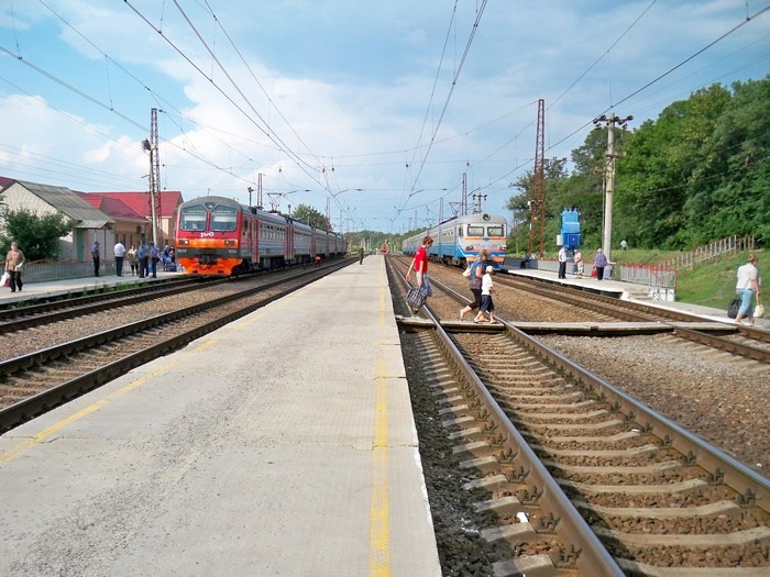 Станция Наумовка. Здесь предстоит пересадка в электропоезд приписки Южной железной дороги.