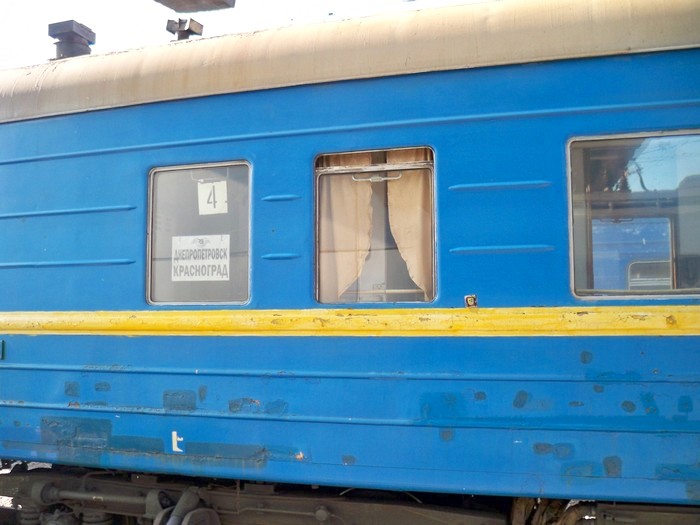 На этот раз подъём и выезд — по плану. Вокзал открыт, билетная касса работает. В 2:55 приобретаю билет до Днепропетровска. Он стоил 9 гривен 75 копеек, тогда как внутри поезда и в кассах Днепропетровска — вдвое дороже. Станция Красноград находится на Южной железной дороге, и билеты здесь продаются по тарифам Южной железной дороги. По направлению на Днепропетровск вплотную к Краснограду находится граница с Приднепровской железной дорогой, имеющей другой тариф.