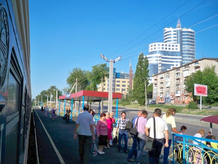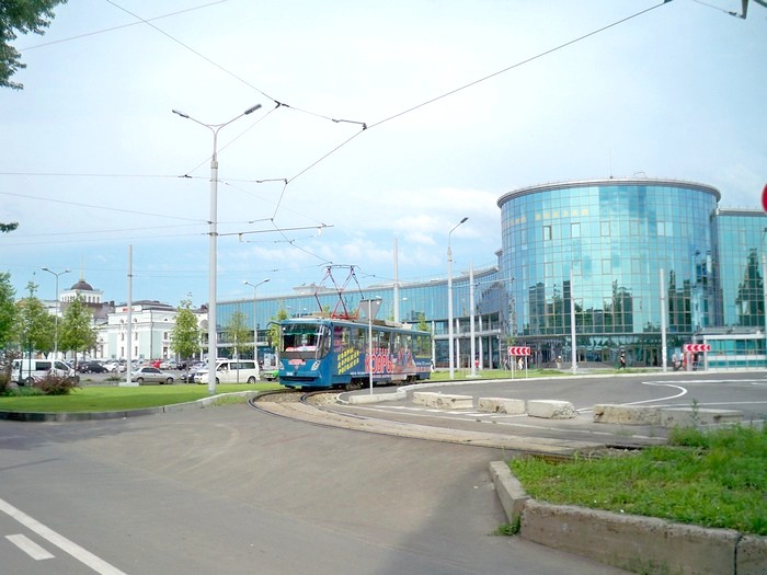 Донецк. Конечная станция трамвайного маршрута №1 у нового здания вокзала.