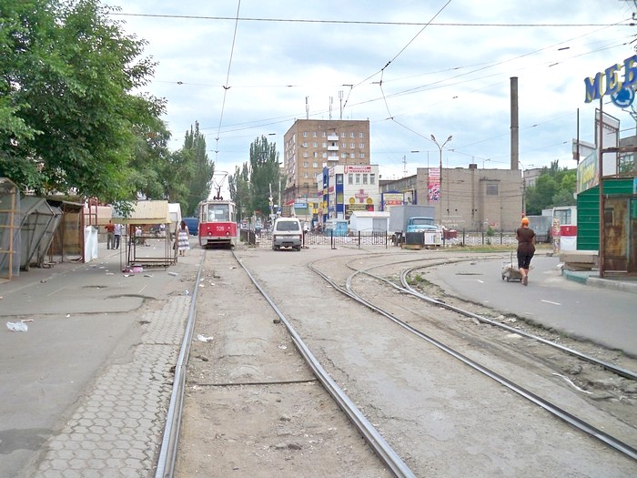 Мариупольский трамвай. Конечная станция «Улица Казанцева» - ближайшая к центру города.