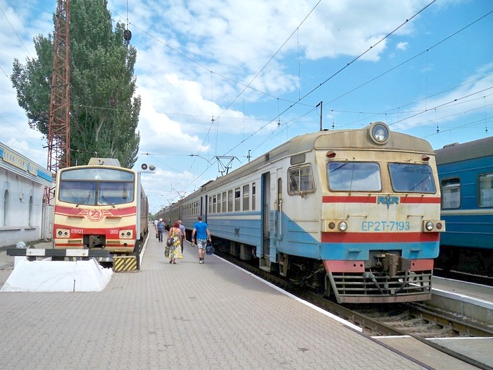 Станция Днепропетровск. Пригородный поезд, прибывший из Краснограда.