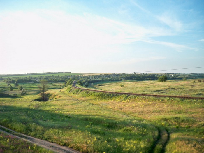 Железнодорожная линия Гребёнка — Бобринская (Шевченко) немногим южнее узловой станции Гребёнка.