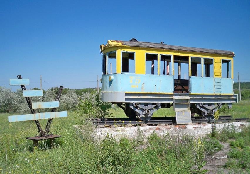 Константиновка. Вагон-памятник у трамвайного депо.