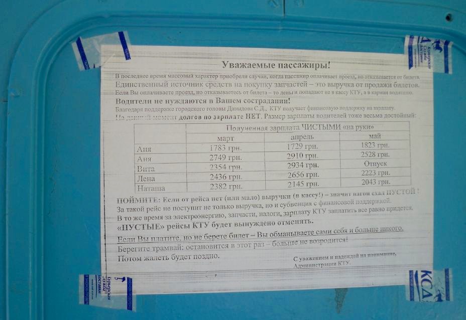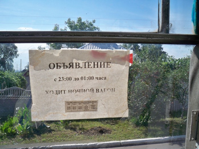 Объявление в Дружковском трамвае. Между тем, днём движение прекращается в 18 часов.
