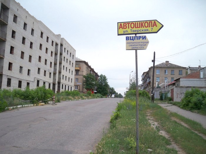 Слева - дом с адресом Радченко, 33. Он стоит недостроенным с 1989 года.