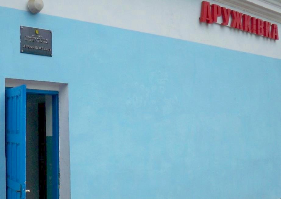 Вокзал на станции Дружковка. Табличка с названием и линейный пункт милиции,
