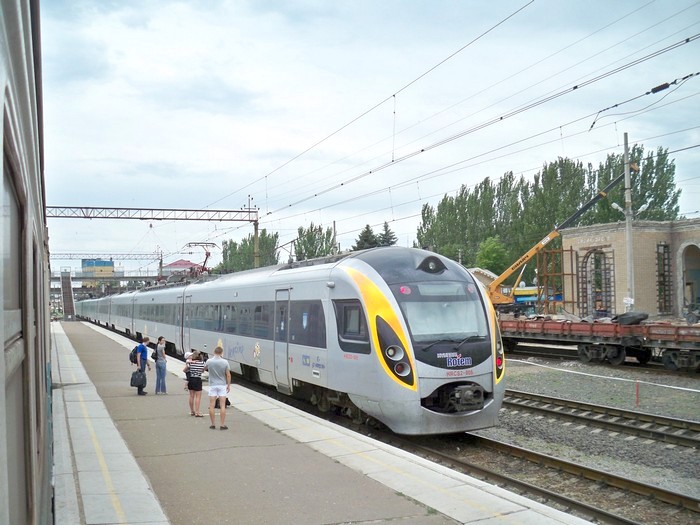 Скоростной поезд Hyundai на станции Краматорск.