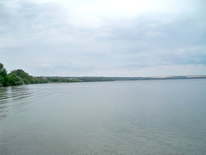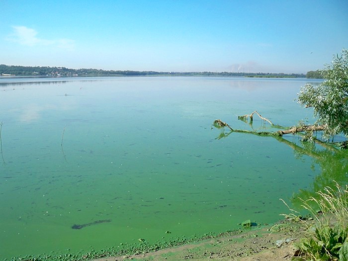 Залив Ленинского (Днепровского) водохранилища. Зелёный цвет воды не является препятствием для купания.