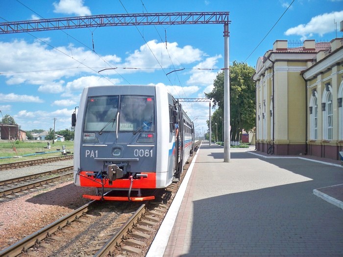 Станция Ворожба. Автомотриса РА1-0081 проследует по маршруту Тёткино — Ворожба — Курск.