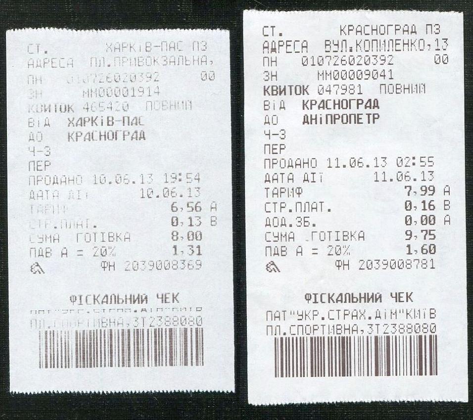 Билеты Харьков — Красноград и Красноград — Днепропетровск.