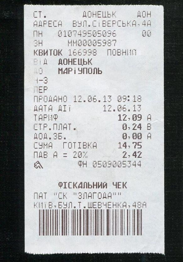 Билет Донецк — Мариуполь.
