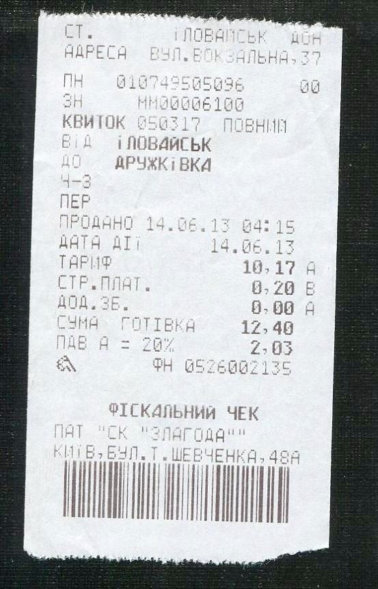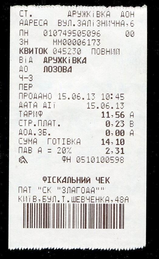 Билет Дружковка — Лозовая.